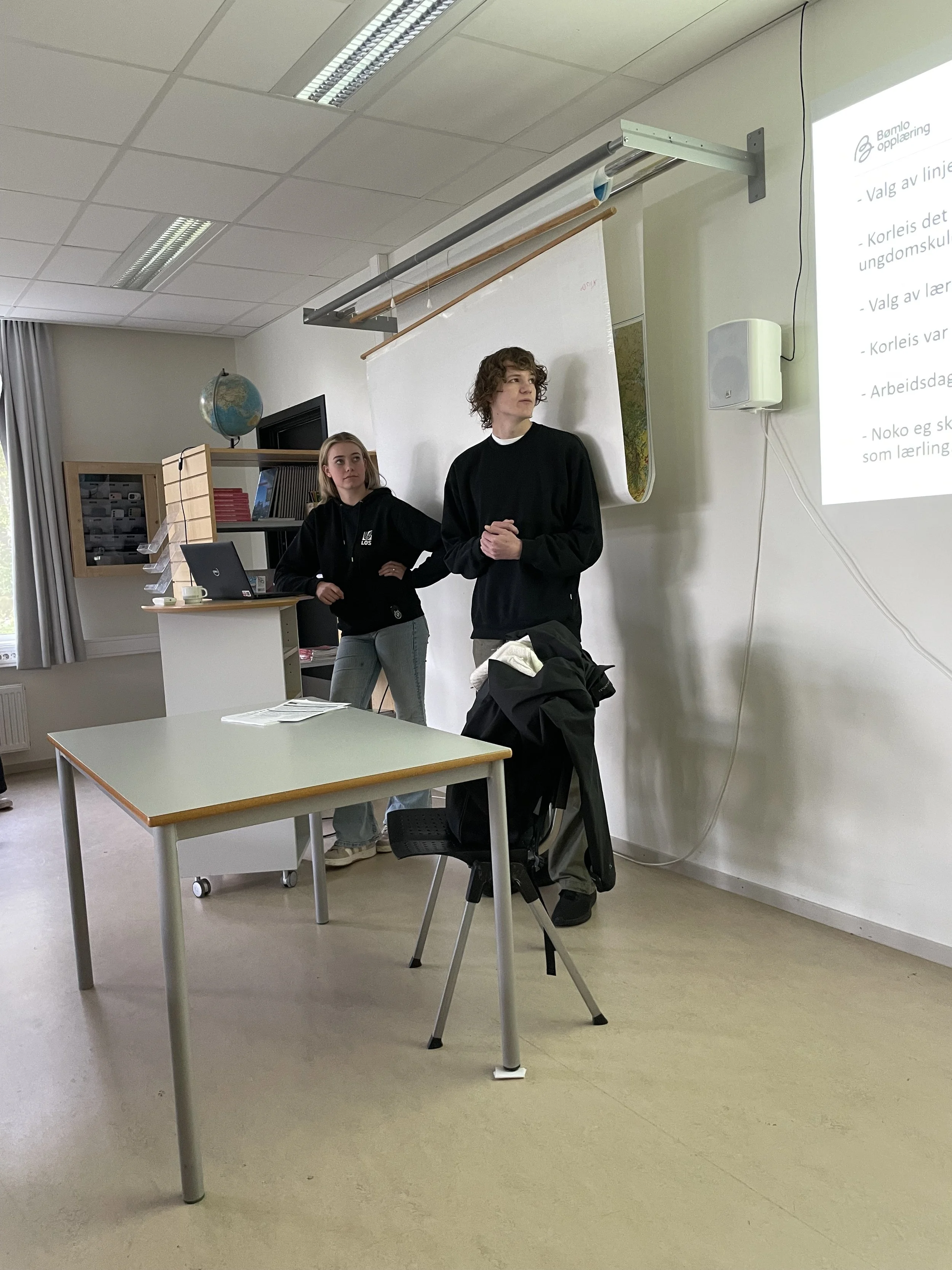 Med seg hadde dei to engasjerte lærlingar: Yvonne Sjursen, som er lærling i industrimekanikarfaget hos LOS Marine, og Samuel Helland, lærling i IT-driftsfaget i Bømlo Kommune. Dei delte sine eigne erfaringar med elevane – frå valet av utdanningsprogram på vidaregåande, til korleis det var å gå frå ungdomsskule til vidaregåande, og vidare til overgangen til arbeidslivet som lærling.